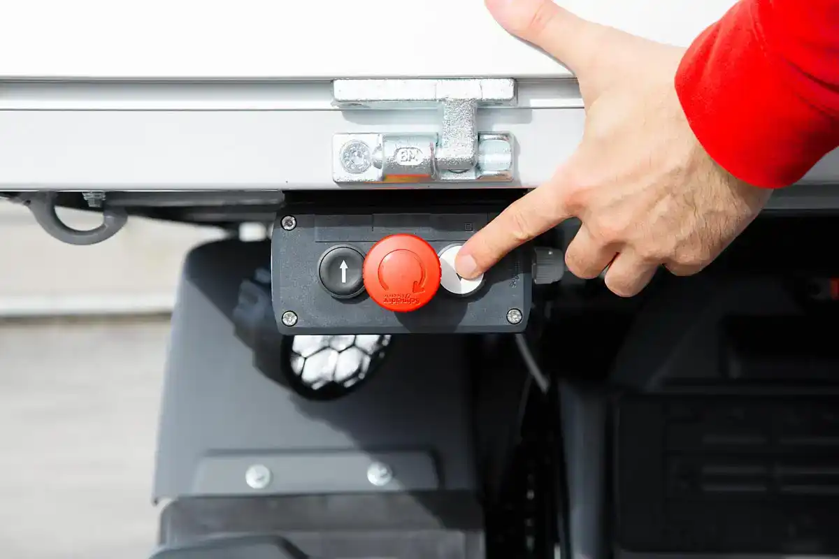 Um exemplo é o farol traseiro, pensado para iluminar o local de engate e desengate do reboque, tornando a operação mais simples e rápida. Outro elemento importante é o quadro onde o comando de marcha (avante/marcha ré), que também é posicionado na parte traseira. Esta funcionalidade proporciona ao operador aproximar ou afastar o veículo através dos botões do quadro de marcha, possibilitando engatar o reboque sem depender de comandos de dentro da cabina e com total segurança.